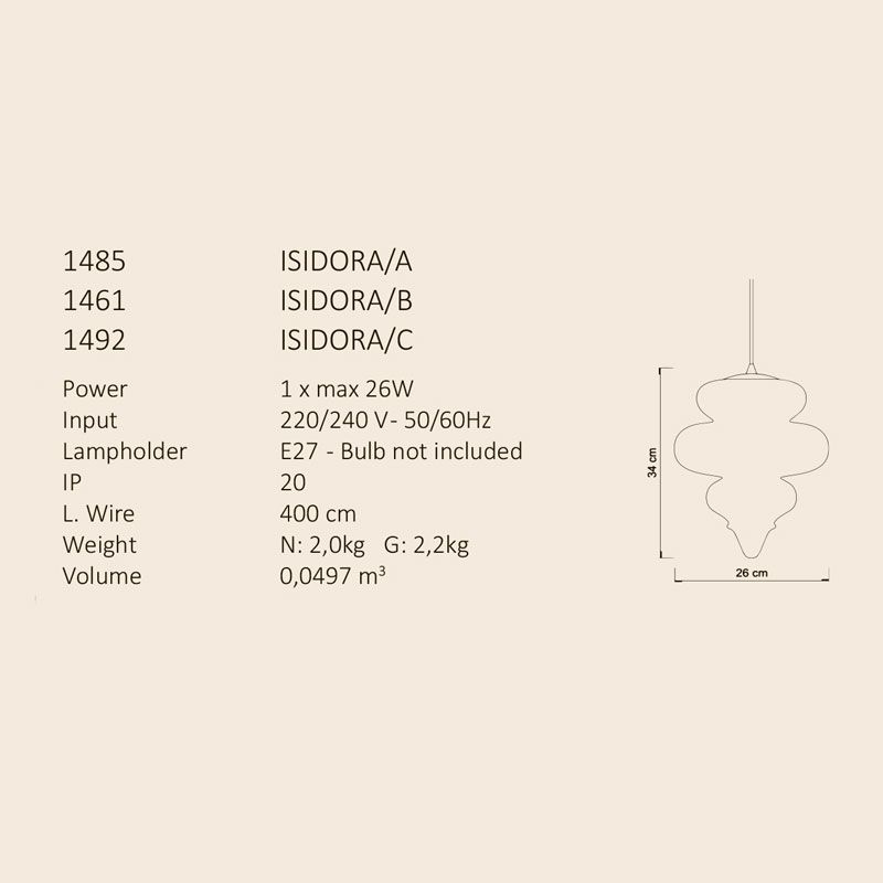 Подвесной светильник Isidora – это рестайлинг классического светильника Isotta, получивший более современную и извилистую форму.