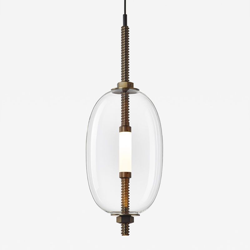 Этот поразительный визуальный эффект дополнительно подчёркивается техническими элементами, такими как резьбовой стержень, проходящий через тонкую стеклянную колбу и привносящий нотку геометрической правильности и индустриальной элегантности. Under Pressure создаёт впечатляющий контраст, притягательное сочетание естественной пластичности стекла и бескомпромиссной точности металла. Светильники выпускаются в различных размерах и вариантах исполнения, с широким спектром вариантов цвета стекла и отделки поверхности, что создаёт образ, который всегда притягивает взгляд и украшает любой интерьер.