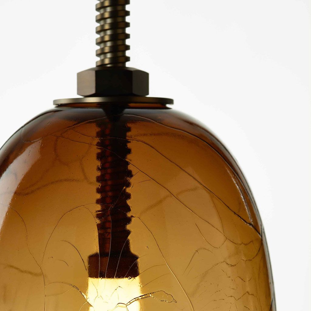 Этот поразительный визуальный эффект дополнительно подчёркивается техническими элементами, такими как резьбовой стержень, проходящий через тонкую стеклянную колбу и привносящий нотку геометрической правильности и индустриальной элегантности. Under Pressure создаёт впечатляющий контраст, притягательное сочетание естественной пластичности стекла и бескомпромиссной точности металла. Светильники выпускаются в различных размерах и вариантах исполнения, с широким спектром вариантов цвета стекла и отделки поверхности, что создаёт образ, который всегда притягивает взгляд и украшает любой интерьер.
