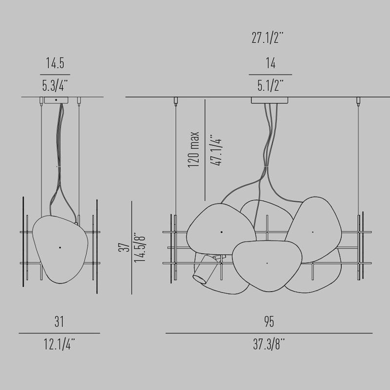 Светильники из коллекции Camouflage состоят из металлической «клетки», которая поддерживает декоративные экраны и сам светильник. Они обладают широкими возможностями индивидуальной настройки благодаря возможности комбинирования стандартных элементов по желанию, а также возможности заказа альтернативных вариантов отделки и размеров. Декоративные экраны доступны в шести вариантах из металла и стекла. Прожекторы GU10 предназначены для установки внутри клетки и направления света по желанию.