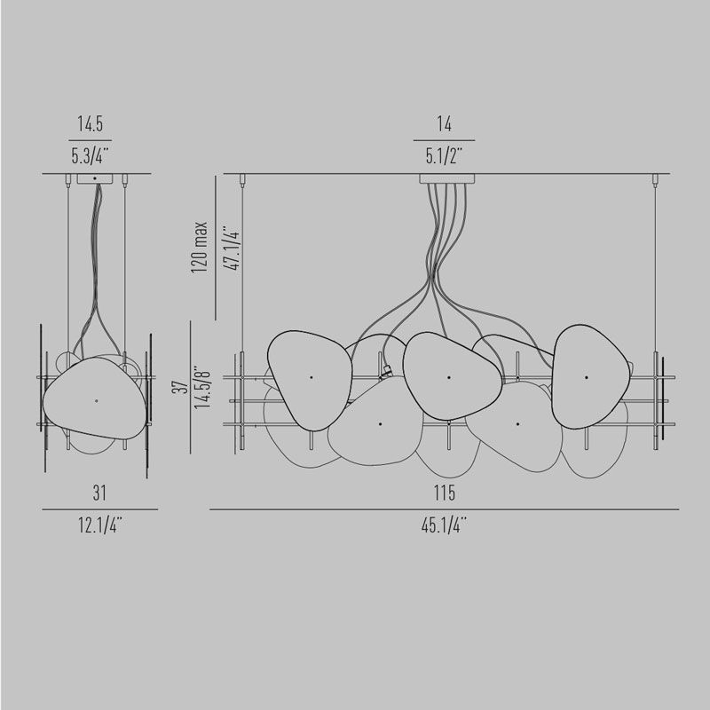 Светильники из коллекции Camouflage состоят из металлической «клетки», которая поддерживает декоративные экраны и сам светильник. Они обладают широкими возможностями индивидуальной настройки благодаря возможности комбинирования стандартных элементов по желанию, а также возможности заказа альтернативных вариантов отделки и размеров. Декоративные экраны доступны в шести вариантах из металла и стекла. Прожекторы GU10 предназначены для установки внутри клетки и направления света по желанию.