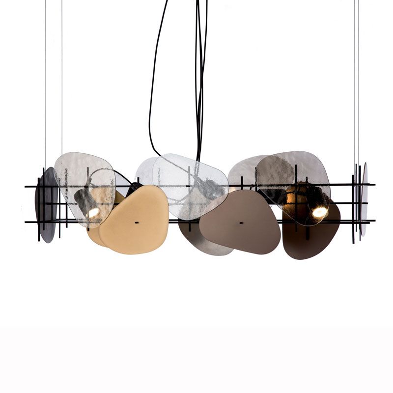 Светильники из коллекции Camouflage состоят из металлической «клетки», которая поддерживает декоративные экраны и сам светильник. Они обладают широкими возможностями индивидуальной настройки благодаря возможности комбинирования стандартных элементов по желанию, а также возможности заказа альтернативных вариантов отделки и размеров. Декоративные экраны доступны в шести вариантах из металла и стекла. Прожекторы GU10 предназначены для установки внутри клетки и направления света по желанию.
