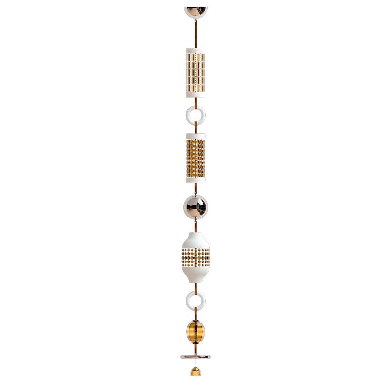 Геометрические формы чередуются с декоративными деталями, придавая коллекции динамику и характер. Свет мягко проходит через стеклянные и хрустальные элементы, отражаясь и преломляясь, создавая богатую игру бликов и теней.