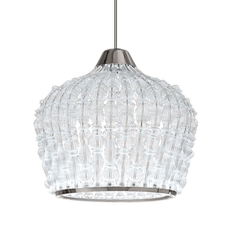 Металлическая конструкция с хромированной отделкой служит строгой оправой для стеклянного великолепия. Прозрачное стекло в обрамлении хрома создаёт ощущение воздушности и лёгкости, несмотря на внушительный масштаб светильника. Для тех, кто ищет более тёплое звучание, доступна версия с золотым напылением, добавляющая интерьеру нотку драгоценной роскоши.