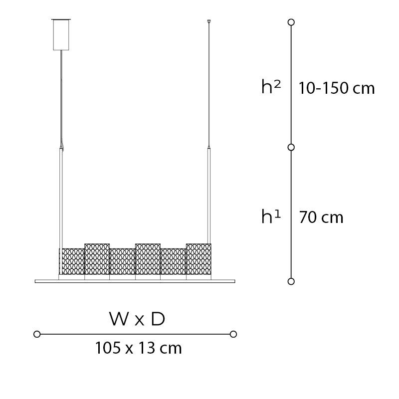 В основе композиции линейная металлическая конструкция, на которой словно на качелях закреплены от шести до восьми цилиндрических плафонов из резного хрусталя. Такое расположение создаёт лёгкий, почти музыкальный ритм: диффузоры чередуются в пространстве, оставляя воздух между собой, и каждый из них самостоятельная драгоценность, вырезанная вручную.