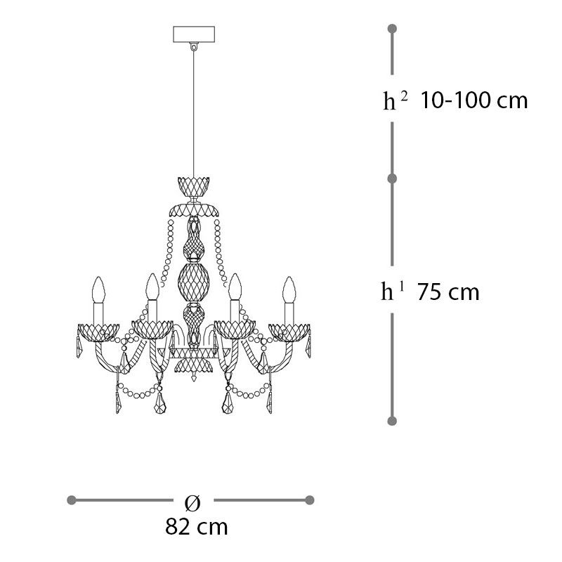 Центральный элемент — плафоны и декоративные детали из резного хрусталя, доступные в двух версиях: прозрачный и тёплый тик с глубоким, медовым оттенком экзотической древесины. Каждый хрустальный элемент вырезается вручную, что придаёт люстре богатую игру света — грани преломляют лучи, создавая бесконечное мерцание, а подвесы из хрусталя добавляют композиции воздушности и лёгкости.
