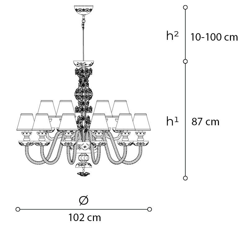 Rosemarie — это свет, который цветёт. Резной хрусталь, керамические розы, расписанные вручную, сияющий металл и мягкая ткань сплетаются в коллекцию, которая не просто освещает пространство, а наполняет его атмосферой романтики, нежности и итальянского мастерства. Люстра, похожая на роскошный букет, застывший в вечном цветении.