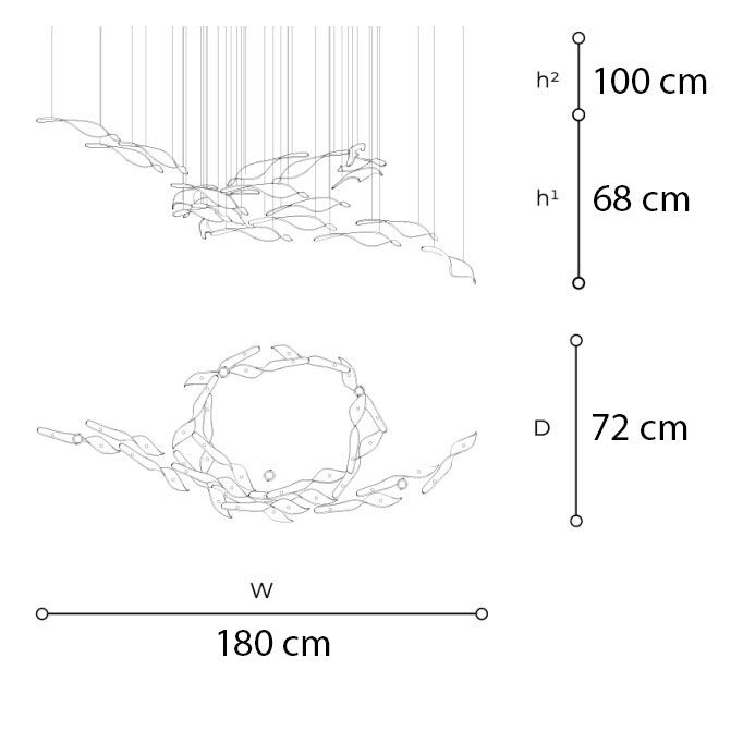 Neda — это больше чем светильник. Это язык ветра, застывший в стекле. Каждый элемент выдувается вручную на муранских мануфактурах, поэтому оттенки и текстура могут незначительно отличаться — это делает каждую композицию уникальной, как неповторим узор, созданный дыханием природы. Идеальное решение для тех, кто хочет привнести в интерьер не просто освещение, а движение, лёгкость и позаию невидимого ветра.