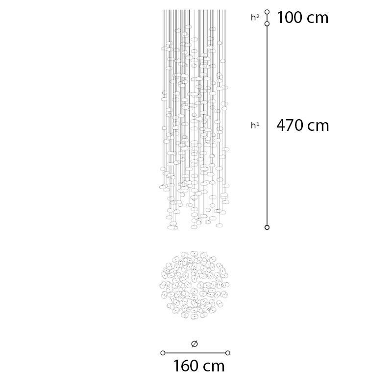- Вертикальные каскады предназначены для пространств с высокими потолками, парадных лестниц и многосветных холлов, где свет струится сверху вниз, словно водопад из стеклянных капель