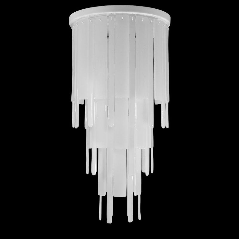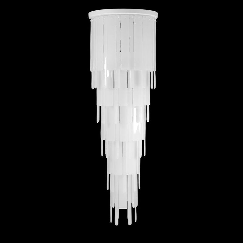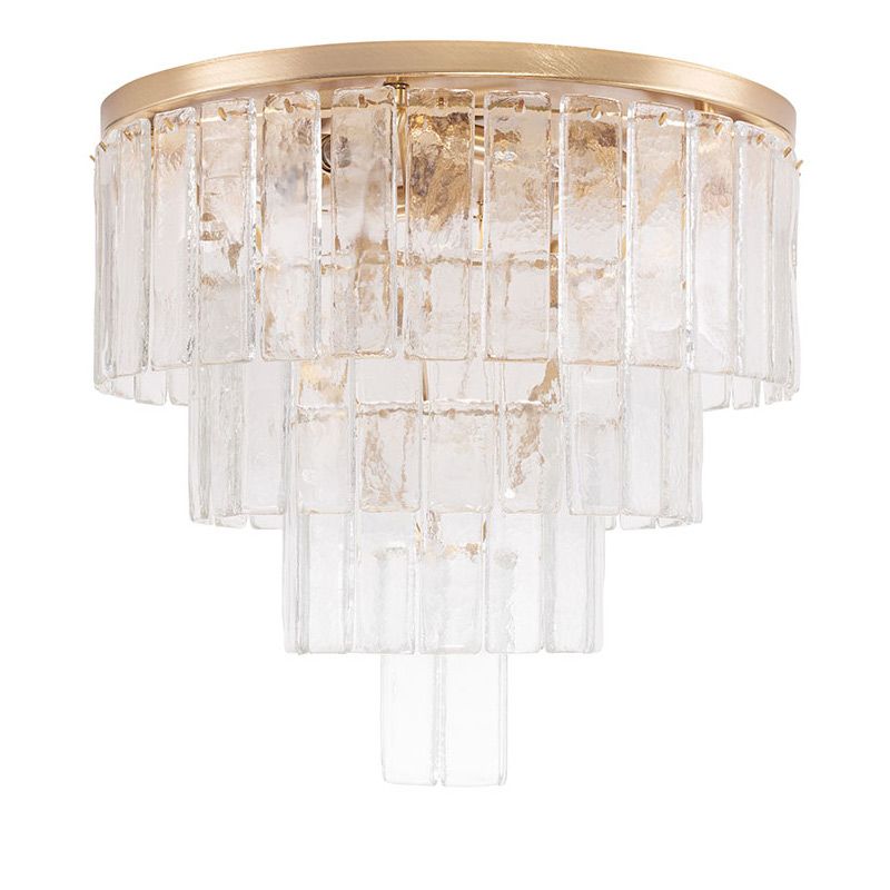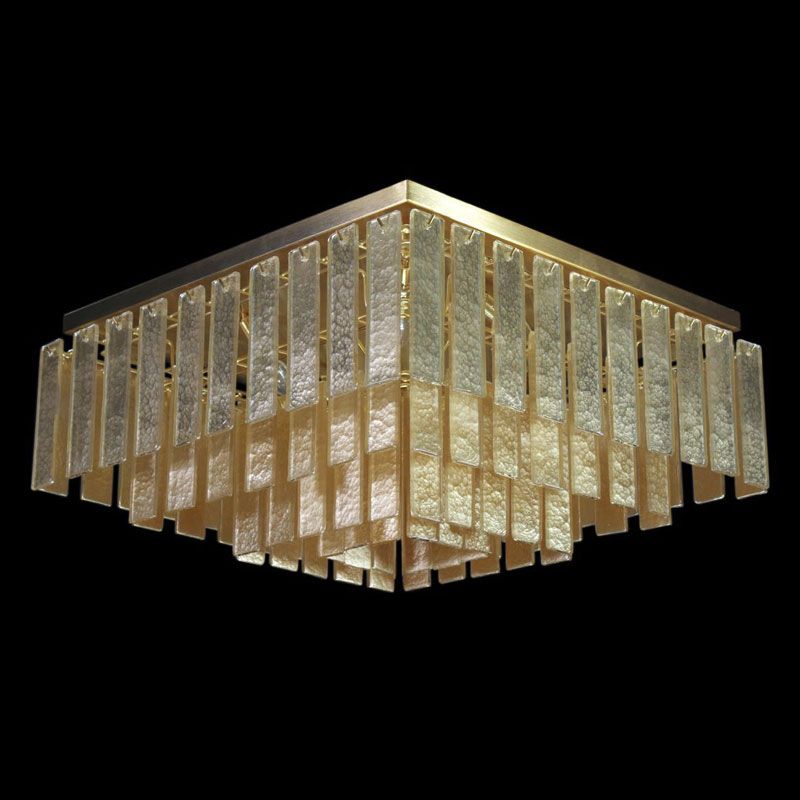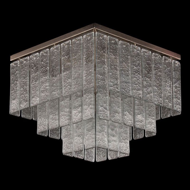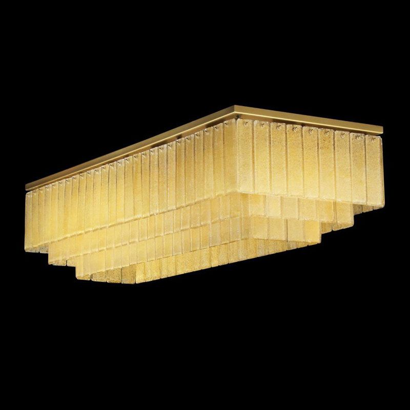 Главный акцент сделан на материале — тонких пластинах из муранского стекла, выполненных по специальной технологии. Их поверхность обладает уникальной фактурой, благодаря которой свет преломляется и создаёт мягкую, многослойную игру бликов.
