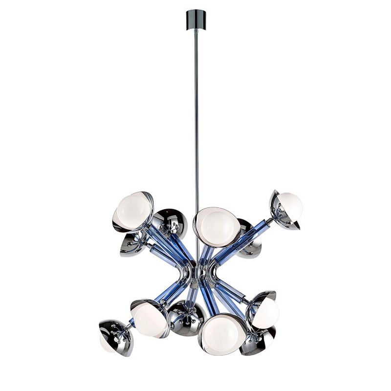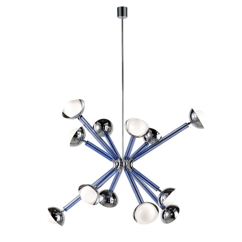 Stimma — это светильник, в котором стекло, металл и свет сливаются в единую динамичную композицию, наполняя пространство энергией и движением. Он словно фиксирует мгновение, когда форма рождается из света.