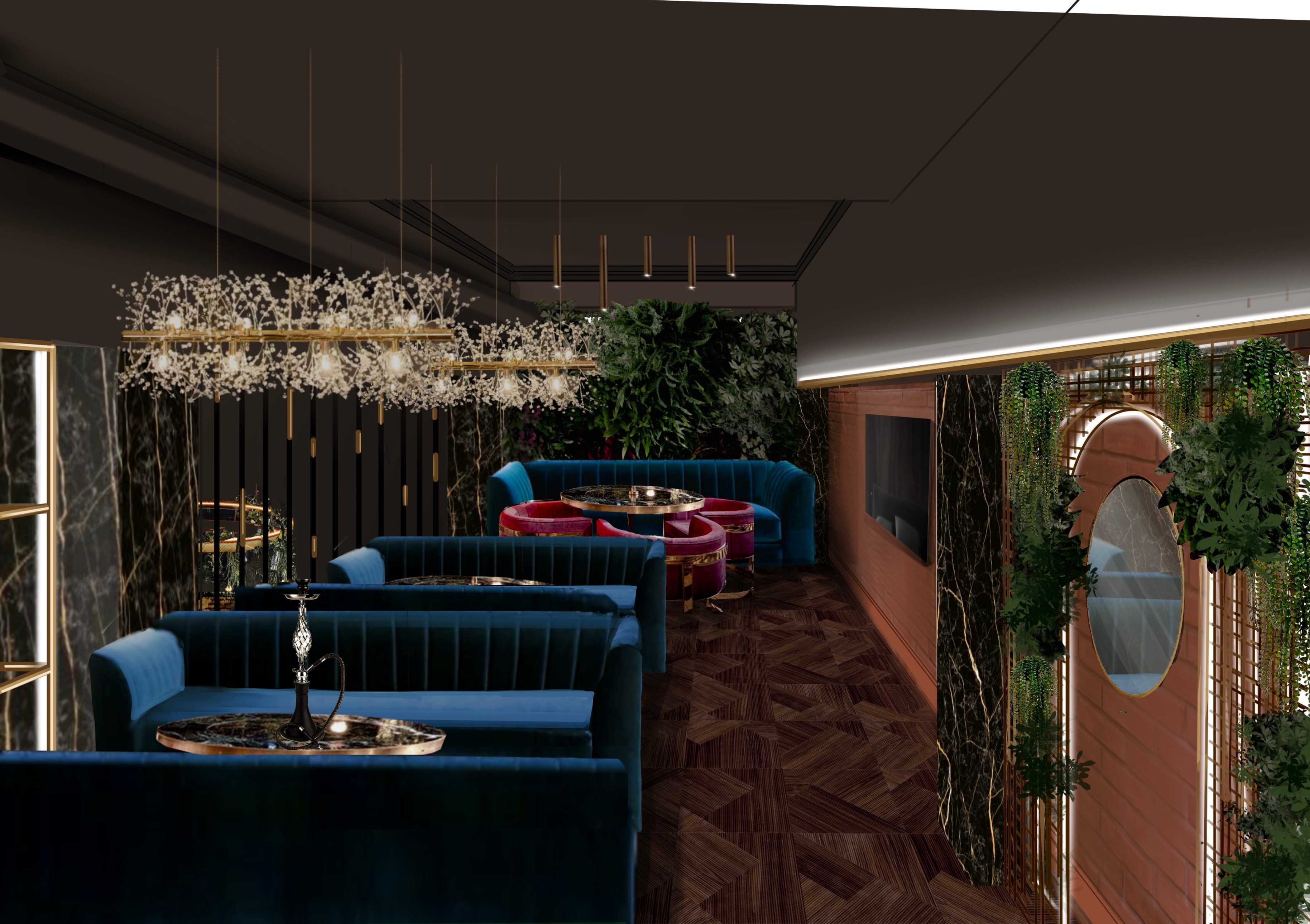 Быстрый проект - быстрая реализация. Интерьер в стиле лофт. Добавили чёрный мрамор с золотыми прожилками Мебель с золотым каркасом Кессоны на стене Широкий классический карниз на потолке Смягчили большим количеством зелени Изюминка в центре - стеклянный винный шкаф с подсветкой высотой 5 метров Получилось очень дорого и красиво!