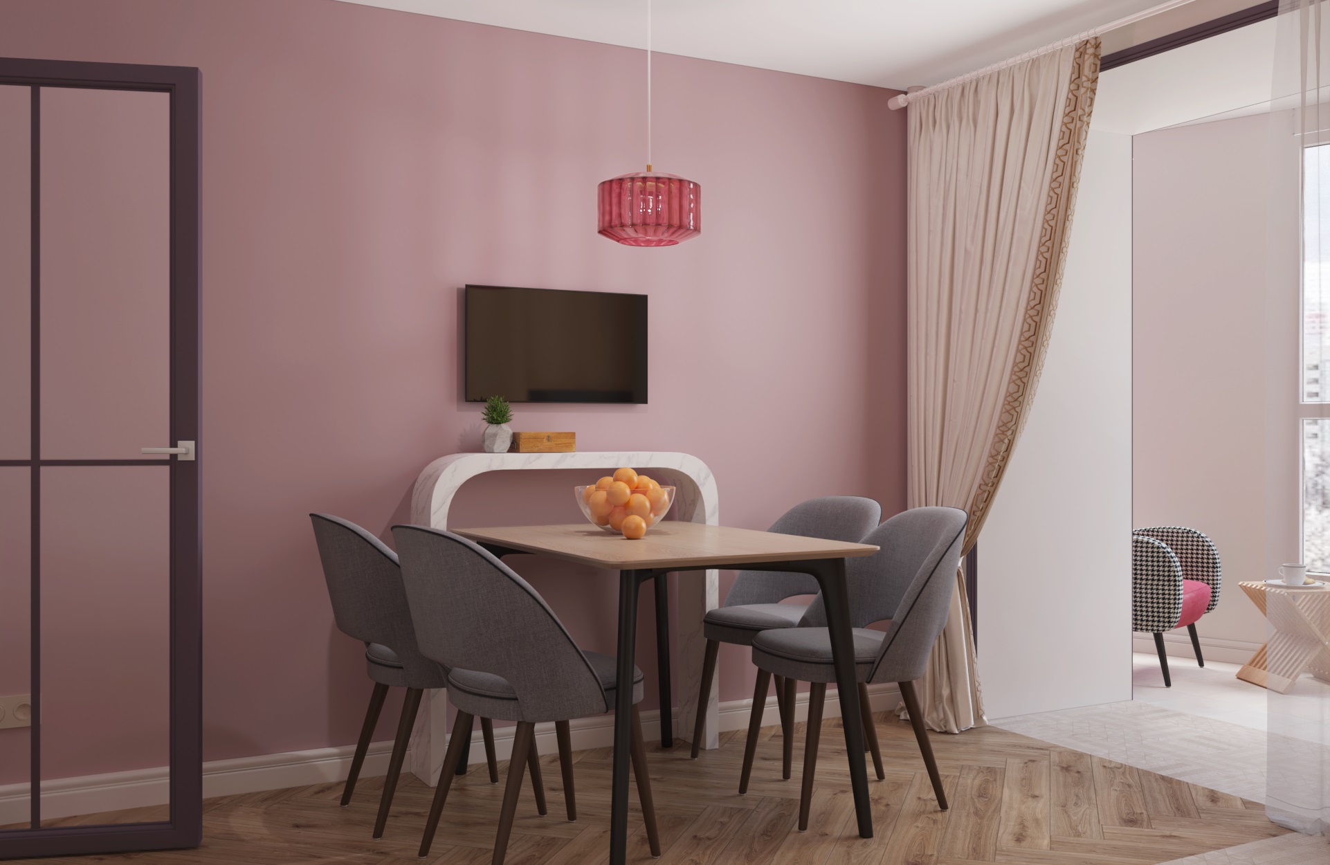 Проект: 3-х комнатная квартира в пудровых тонах