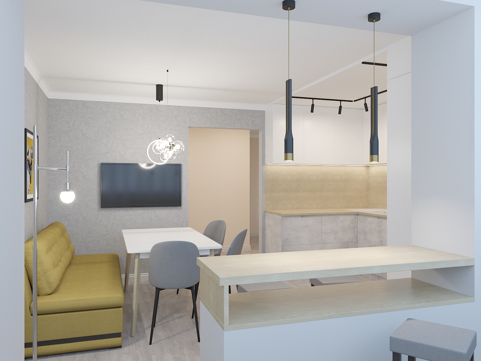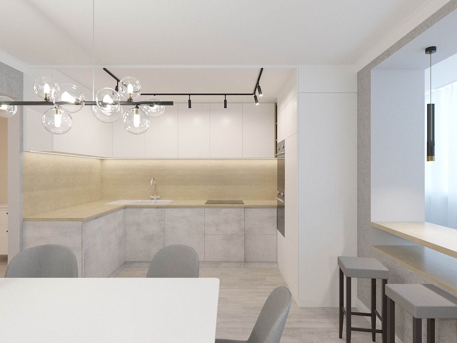 Дизайн студия IDEM Дизайнер: Оксана Ильясова Площадь объекта: 145 кв.м. Сроки выполнения: 60 рабочих дней. 01 АНАЛИЗИРУЕМ ОБЪЕКТ Данный проект один из немногих, где мы не делали никакую перепланировку, а исходили из существующего плана. Это вторичка, и все помещения уже находятся на своих местах. Площадь квартиры, с двумя присоединёнными лоджиями, составляет 135 м2, плюс два холодных балкона, общей площадью 10 м2. 02 ОПРЕДЕЛЯЕМ ЗАДАЧИ Общая конфигурация помещения, если так можно выразиться, неправильная. Комнаты, в большинстве своём, не прямоугольные. Особую сложность представляет собой гостиная, которая вообще не напоминает комнату. Это больше холл, с большим количеством дверей и проходов, что совсем не способствует уюту и комфорту. Проживать будут: мама, папа, взрослая дочь, и, возможно, собака. Каждому необходимо уютное местечко. И каждому хочется, чтобы было стильно, комфортно и, по-возможности, недорого. Из приоритетов — тёмно-зелёный велюр, достаточно светлый пол, а классику со скандинавским стилем немного взболтать, но не смешивать. 03 ПЛАНИРОВОЧНОЕ РЕШЕНИЕ Рассмотрим планировочное решение. Прихожая совсем маленькая, поэтому не перегружаем её мебелью. Зеркало и немного мебели, чтобы можно было разуться и раздеться. Прихожая сразу переходит в коридор, который направляет нас на кухню, в санузел и в гостиную. Комод, прямо по коридору, с круглым зеркалом, даёт возможность скинуть всякие мелочи, вроде ключей, перчаток и расчёсок. Кухня делится на две зоны: саму кухню и столовую. Возможно, присоединять лоджию не имело большого смысла, но, раз уж это решение было принято ранее, сохраняем эту зону, и добавляем на лоджию буфет и барную стойку. В зоне столовой ставим диван. Почему бы и нет? Можем себе позволить! И, конечно же, вешаем телевизор. По статистике, люди чаще смотрят телевизор на кухне, чем в спальне. Ванная комната самая простая: подвесной унитаз с инсталляцией, стиральная машина и умывальник с единой столешницей, простая прямоугольная ванна с душевым комплектом, и узкий полотенцесушитель. Узкий, — потому что оставили место для шкафчика! Поместилось и то, и другое. Гигиеническими душами и прочим не наворачивали — всё самое необходимое! 04 СОЗДАЕМ 3D-ЭСКИЗЫ Центральный акцент всего интерьера – два насыщенных зелёных дивана. Они забирают на себя основное внимание, создавая логический центр. Изумрудную роскошь поддерживают золотые элементы люстры Arte Lamp Viviena и журнального столика. Зелёный с золотом – это наш «Солнечный Мохито». Две видимые стены, напротив диванов, создают некоторое обрамление, завершение композиции. Они оклеены обоями с мелким золотистым рисунком, Did Trend Art. Это похоже на тёплый солнечный свет, но не слишком жёлто! Две двери-невидимки скрываются в этом узоре, а двери на балконы оформляются шторами, так что мы видим одну единственную дверь в спальню. Мы использовали двери ProfilDoors. И «проходная» гостиная становится комфортной и уютной. Лишних дверей больше нет. При помощи 3D-визуализаций клиенты могут визуально представить дизайн своего дома, высказать пожелания и дополнения. 05 РАБОЧИЕ ЧЕРТЕЖИ Рабочие чертежи, выполненные для этого интерьера, разбирают весь интерьер по деталькам. Они очень подробные. На планах мы не только указали расположение и привязку электрики, сантехники и т.д. Мы подробно расписали все нюансы интерьера: дек