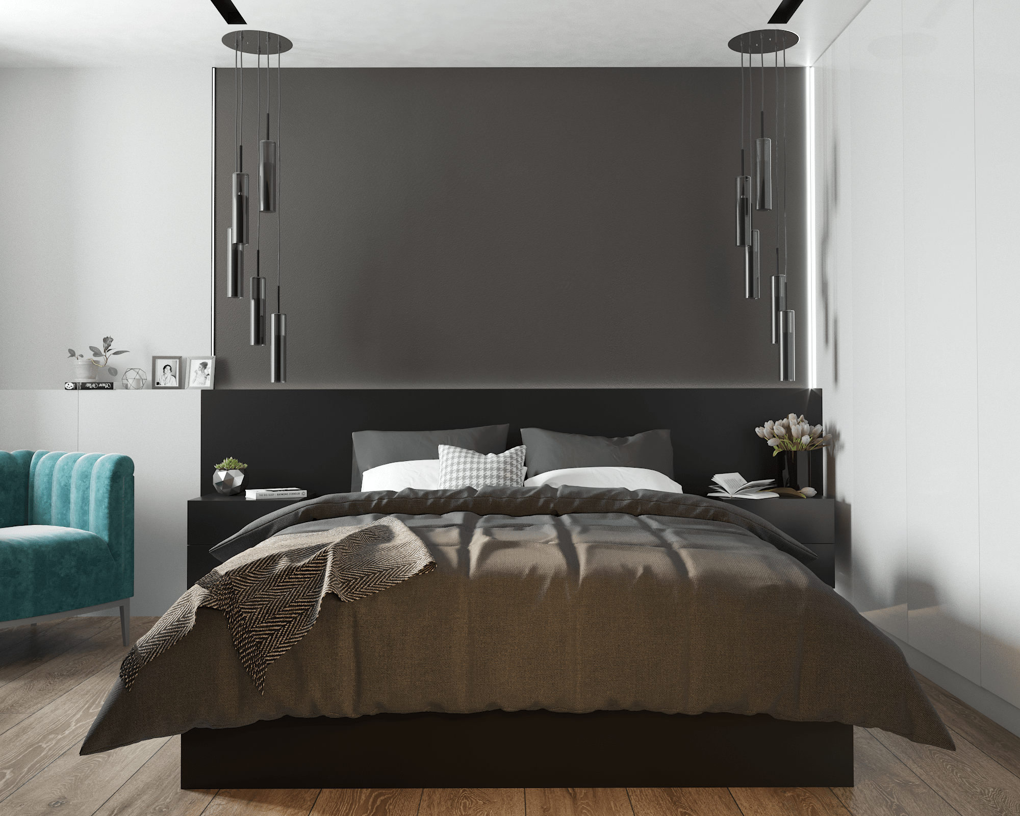 Задачи проекта 1. Внедрить систему "умный дом" с учетом требований заказчика; 2. Предусмотреть различные сценарии освещения в спальне; 3. Учесть имеющиеся предметы в будущем интерьере; 4. Предусмотреть спальное место для взрослого ребенка, приезжающего на выходные; 5. Создать комфортную среду для одного из детей, с особенностями в развитии; 6. Заложить в проект большое количество зон хранения.