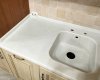Наша работа. Столешница для кухни и столешница на тумбу из искусственного камня Grandex M-701 Hazel Flow Marble Ocean светло-бежевого цвета с мраморной текстурой. Столешница угловая: - Размеры: 1510х2130х600 мм. - Толщина: 38 мм. - Подгиб: да. - Борт: прямой, высотой 40 мм. - Кромка: радиусная. - Кухонная мойка: интегрированная из искусственного камня, модель R450k. Размеры: 425х400 мм. Сливное отверстие: с краю. Глубина чаши: 205 мм. - Вырезы под варочную панель, слив, смеситель, дозатор. Столешница на тумбу / мебельный модуль: - Размеры: 1579х350 мм. - Толщина: 38 мм. - Подгиб: да. - Борт: нет. - Кромка: радиусная. Обработчики: мастера компании Гермес и компании Меркурий, Санкт-Петербург.