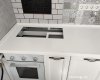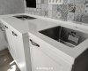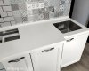 Кухонная столешница из искусственного камня Grandex D-308 Cubic Mint Deliscious Edition белого цвета с вкраплениями. - Форма столешницы: нестандартная. - Размеры: 1811х600/665 мм. - Толщина: 40 мм. - Подгиб: да. - Борт: прямой, высотой 30 мм. - Кромка: радиусная. - Кухонная мойка: подстольный монтаж. - Вырезы под варочную панель, мойку, смеситель.