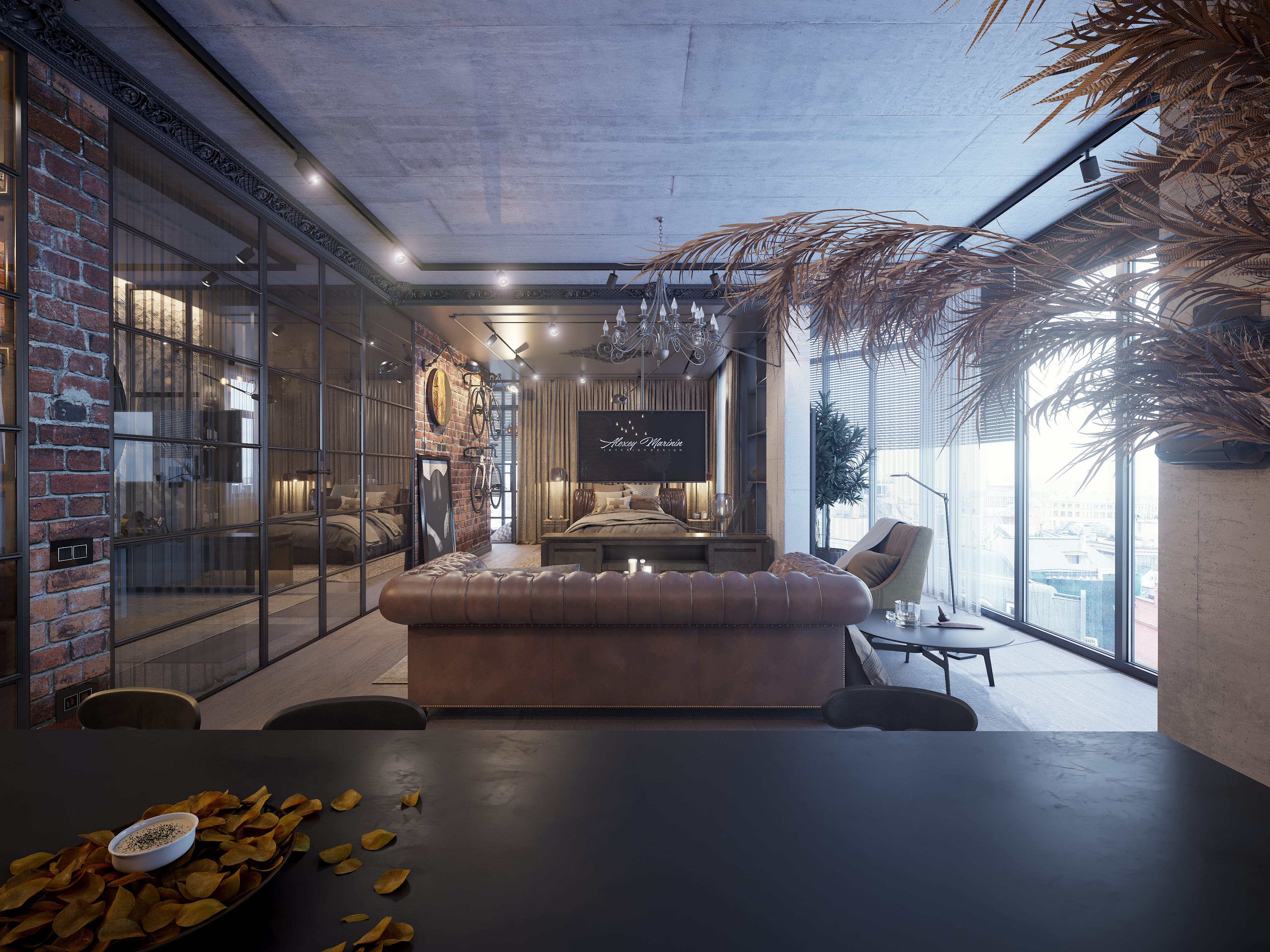 Дизайн Студия Маринина Алексея - Кухня-гостиная-спальня
