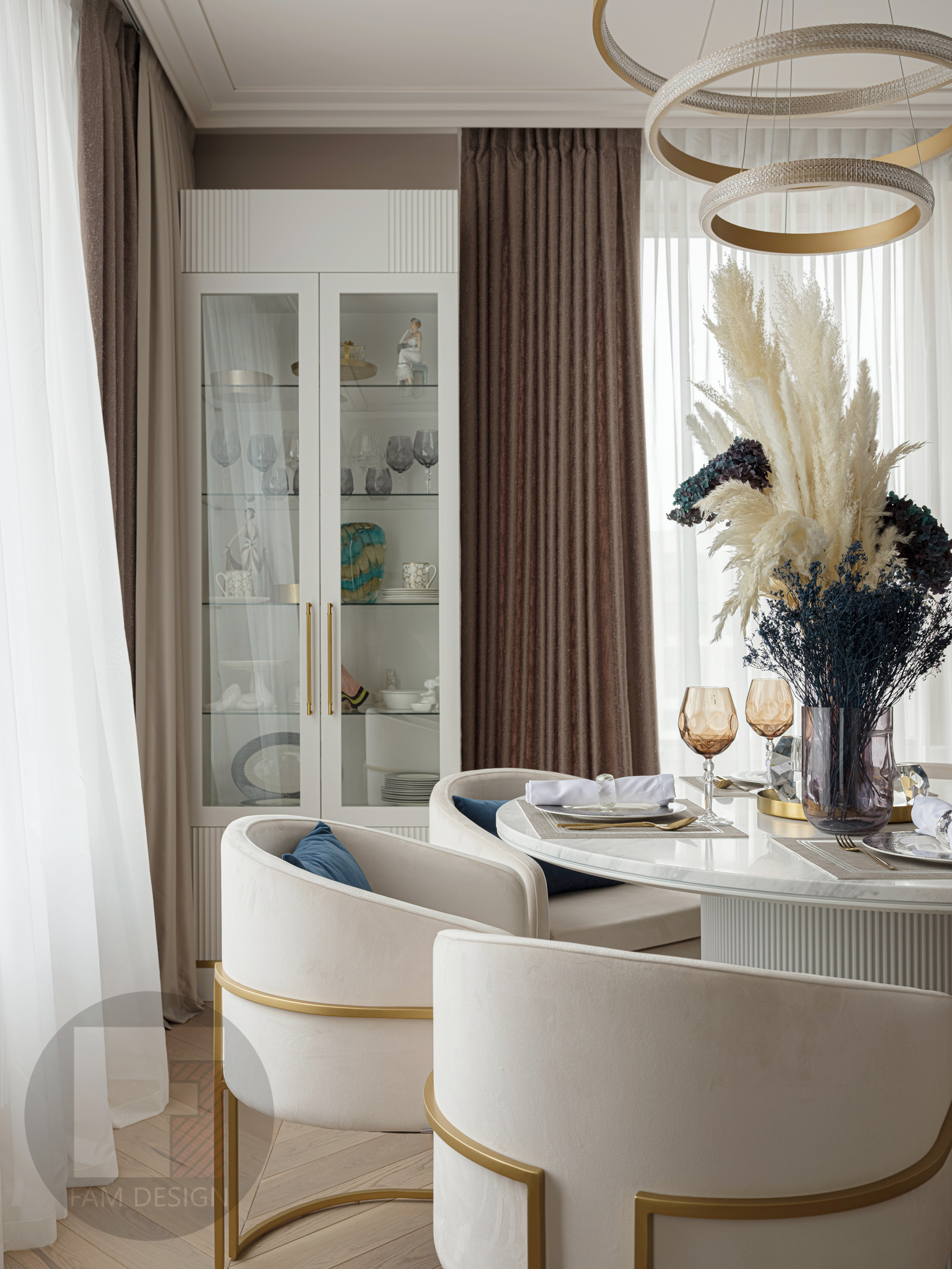Квартира 165кв.м Объединив 2 квартиры, наши заказчики получили достаточно пространства для большой семьи. В задачах стояло создать парадный интерьер в классическом стиле, приветствовались декоративные элементы, оригинальные решения и яркие цвета. И много света – встроенного и декоративного. Этот проект, поначалу, пошел не совсем гладко – предварительная концепция показалась заказчикам слишком сдержанной, хотелось больше шика. Дизайнерам проекта пришлось пересмотреть свои взгляды на прекрасное и добавить лоску: более сложные фактуры, больше зеркал, больше декоративных элементов цвета латуни, ярче краски. Итоговое решение – компромисс между стремлением дизайнера к современным тенденциям на упрощение и желанием заказчиков получить нарядный классический интерьер. При реализации проекта пришлось потрудиться, чтобы задуманные дизайнерами сложные декоративные элементы не разорили заказчиков: было найдено множество бюджетных решений, состыковывались разные подрядчики, подбирались предметы интерьера отечественного производства, в итоге интерьер получился роскошным, а бюджет проекта - весьма умеренным!