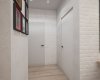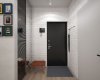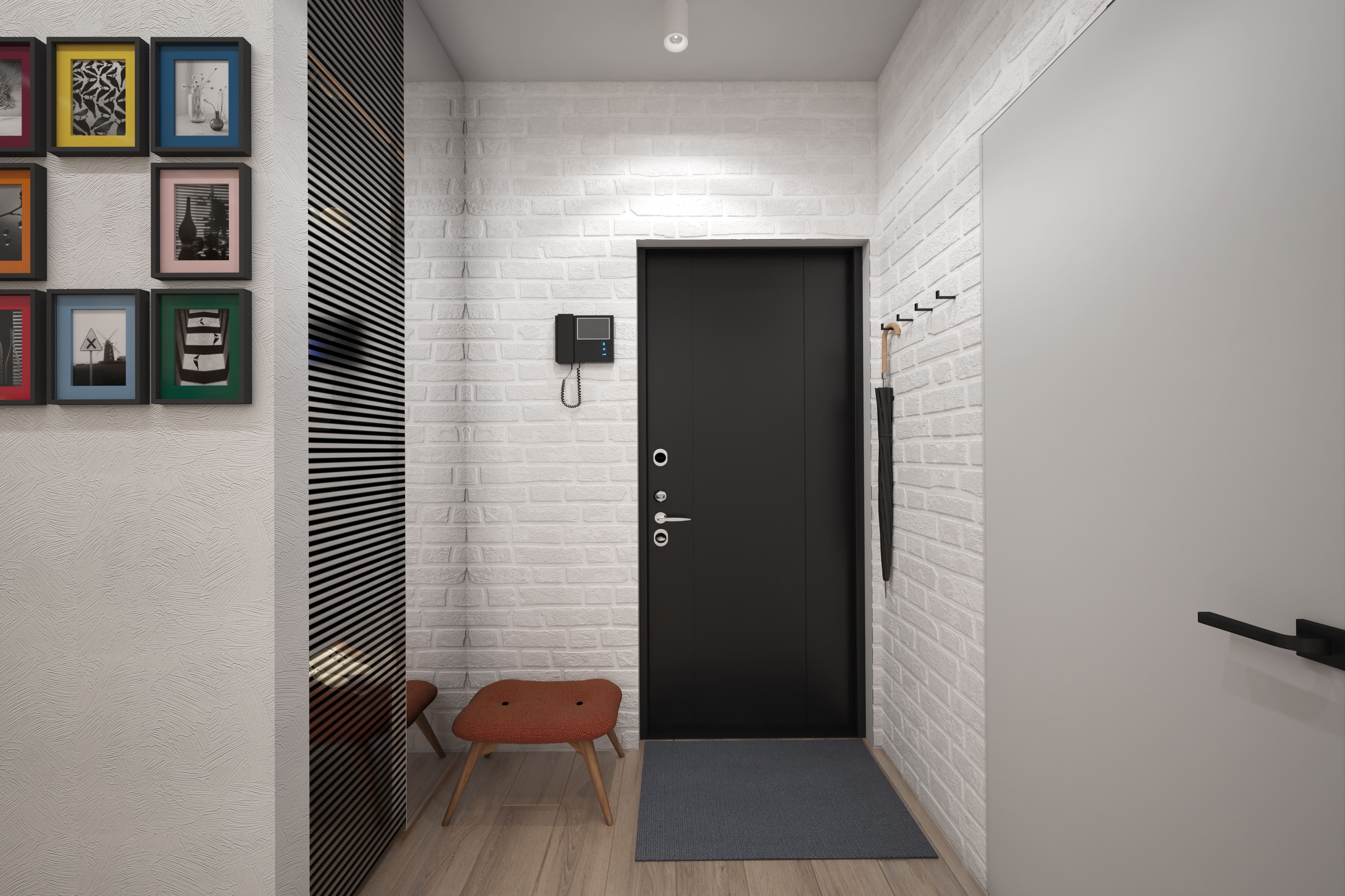Кухня-гостиная, в этой квартире, объединена с лоджией, что, значительно расширило пространство помещения. Квартира в стиле «домашний лофт» или «лёгкий лофт». Не вполне урбанистично, но, с элементами. Основными чертами лёгкого лофта являются ярко-белые стены, которые прекрасно отражают свет и создают эффект пространства. Использование натуральных материалов, таких как дерево, кирпич и металл, придаёт интерьеру ощущение дерзкости и непосредственности. В сенузле использовался керамогранит под бетон двух тонов и керамогранит под дерево в зоне ванны.