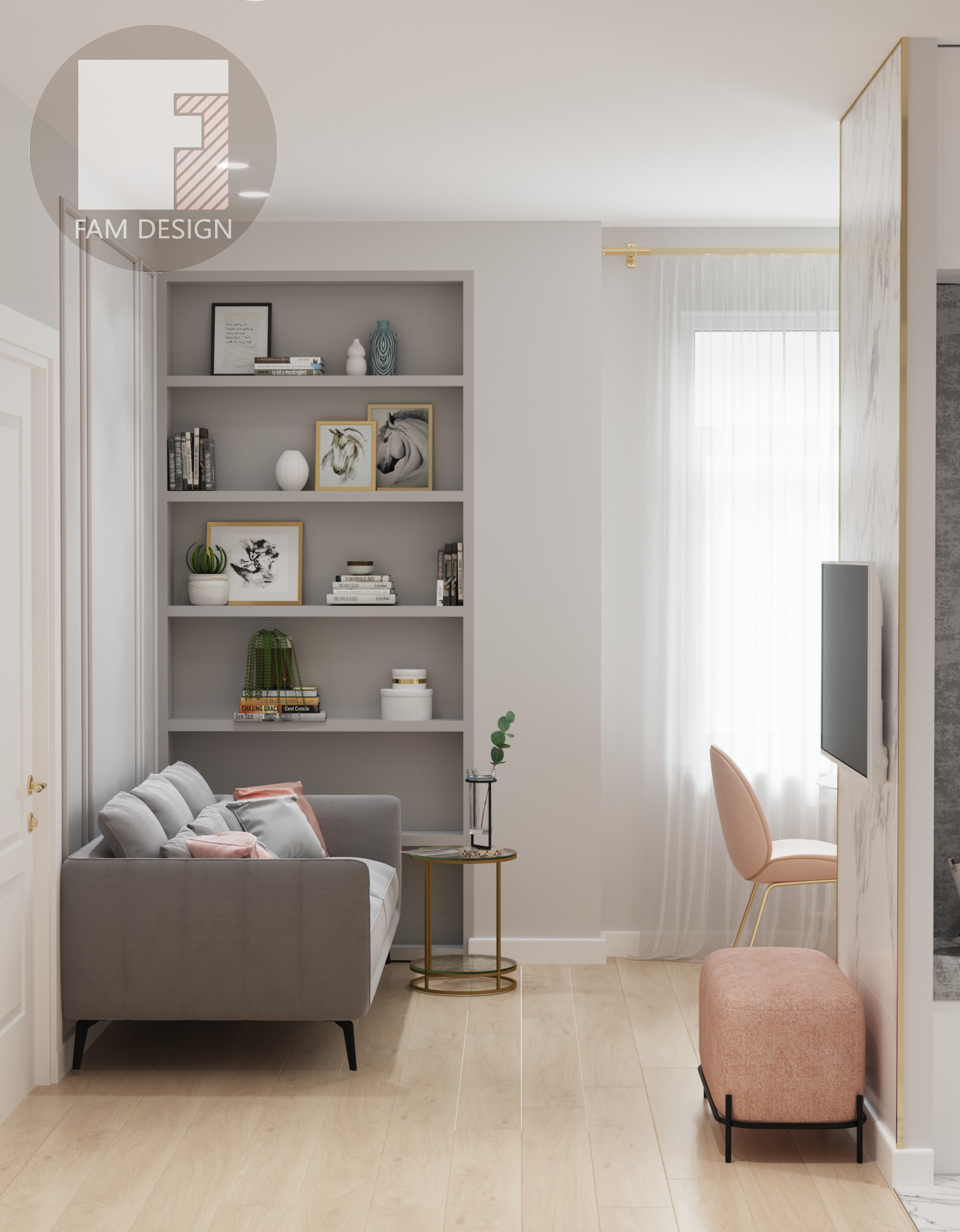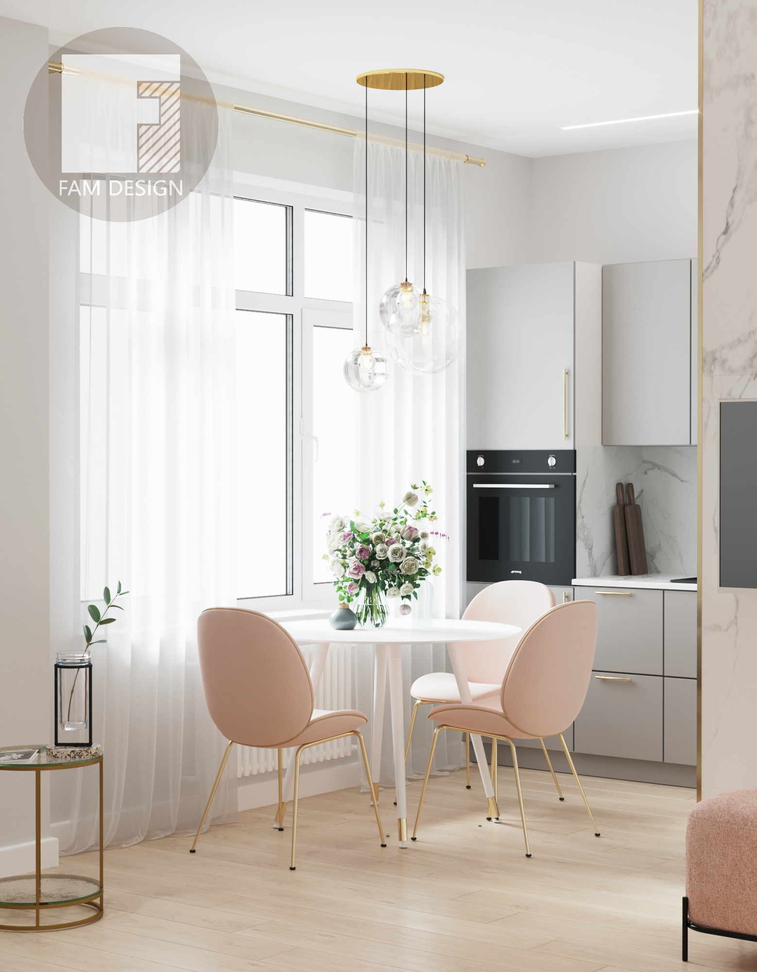 В этом проекте стояла задача в условиях ограниченного бюджета создать элегантный интерьер, смешав классические приемы отделки и современную мебель, добавив немного лоска в виде элементов из матового золота и отделки мрамором. Никаких дорогостоящих предметов и минимум мебели на заказ, и это как раз такой случай, когда результат выглядит намного просторнее и роскошнее, чем можно было ожидать при таком бюджете. Все подобрано настолько аккуратно, что никто и не догадается о реальной стоимости интерьера! Отличный пример ценности работы дизайнера!