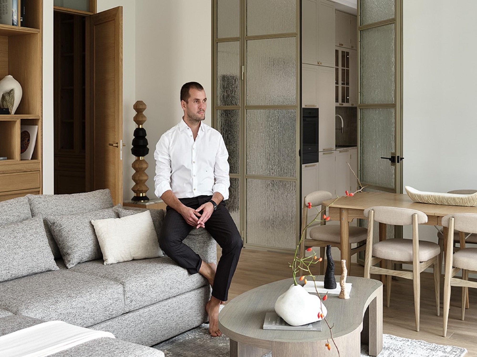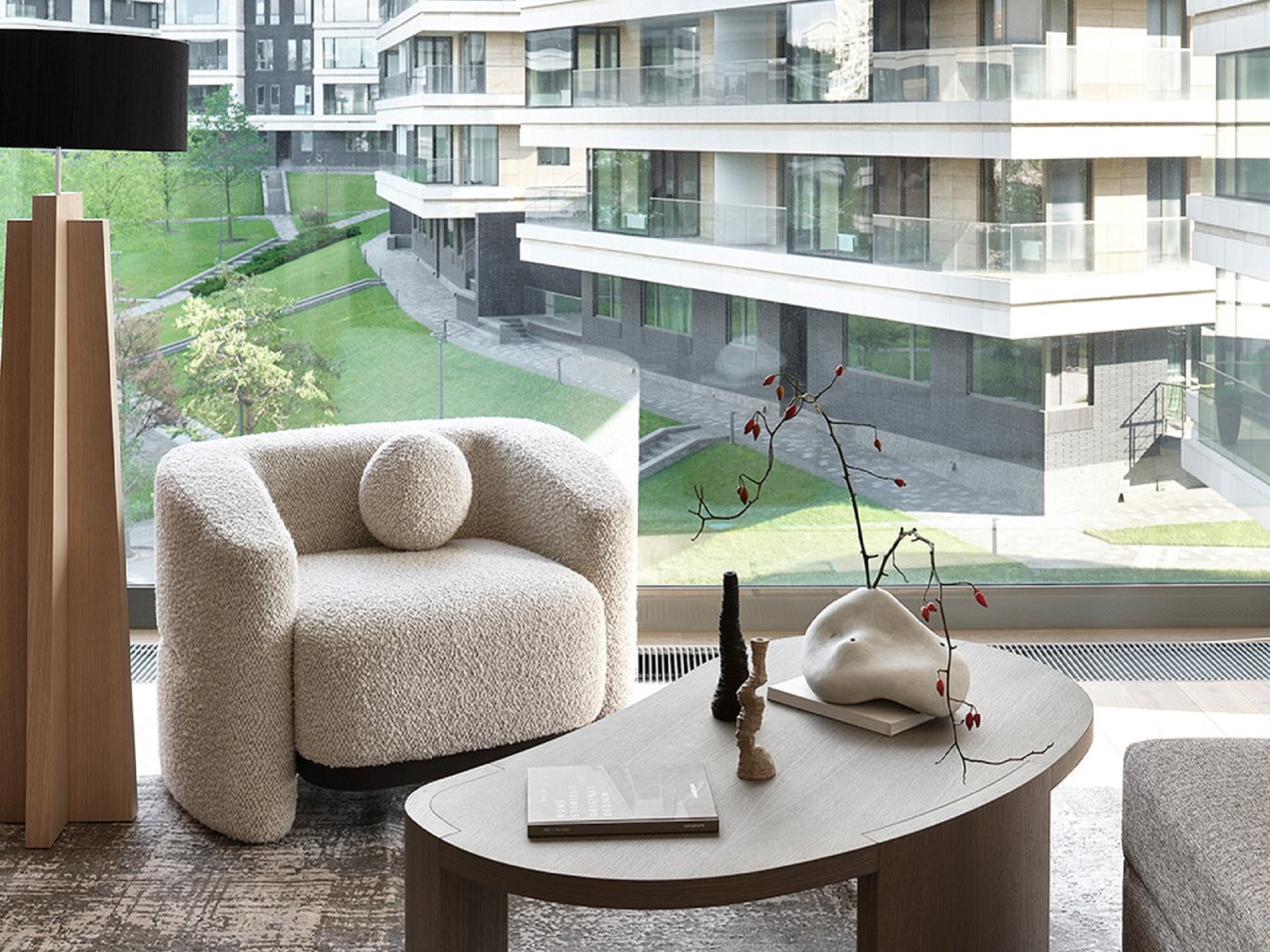 Архитектор Никита Бондарь о проекте: С хозяином этой квартиры мы дружим не первый год: это пунктуальный и дисциплинированный человек, у которого всегда много задач по работе. В семье ожидалось рождение четвертого ребенка, поэтому новое, более просторное жилье стало необходимостью. Одним из главных пожеланий хозяев квартиры было жить в гармонии с природой, находясь при этом в мегаполисе. В итоге нам удалось найти баланс между внешней средой и внутренним пространством и создать нужный визуальный код. Планировка На площади 200 м2 продумано все до мелочей. Так, в большой гостиной удобно собираться всей семьей, здесь стоит фортепиано, чтобы устраивать музыкальные вечера. Инструмент перевезли из старой квартиры, на нем играют и взрослые, и дети. Вообще, эмоциональными акцентами этот интерьера стали музыкальные инструменты - символ семейного наследия. Для каждого из них выбирали особенное место. Кухню отделяют от гостиной распашные двери, при желании их можно закрыть, скрыв рабочую зону от глаз. В коридоре разместилась домашняя библиотека, в которой хранится много интересных изданий. Комната двух сыновей оборудована антресолью, которая стала пространством для игр. Внизу расположено две кровати и один стол, но с двумя рабочими местами, чтобы мальчики не мешали друг другу заниматься. Комната девочек получилась нежной и воздушной, ее пространство не перегружено предметами, что подчеркивает изящность линий и форм.