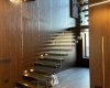 уборки покрытиям. Самое грязное место в доме — вход и зона лестничного пролета, ведь они постоянно используются и их сложнее всего мыть, поэтому мы отдали предпочтения керамограниту и специальным панелям и консолям с пластиковым покрытием, которые легко моются и трудно повреждаются. Отдельными изюминками входной группы стали минималистичная парящая лестница с подсветкой через каждые две ступени и светильники из фольгированного золота, изготовленные под заказ.