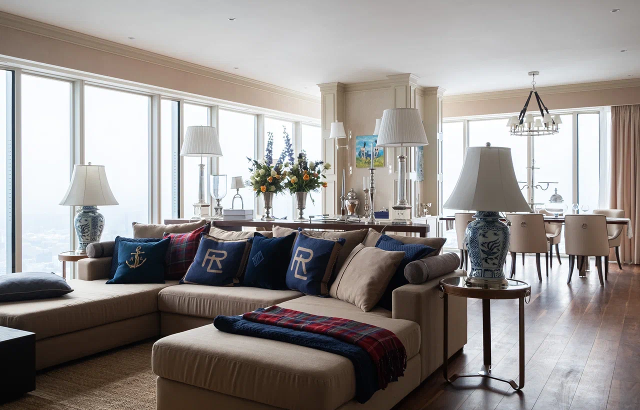 Команда студии дизайна интерьеров Firsov.Design создала уютный и стильный интерьер квартиры в стиле американская классика, начиная от разработки дизайн-проекта и заканчивая реализацией ремонта и расстановкой аксессуаров и декора. 1. Дизайн-проект: Тщательно изучили пожелания и потребностей заказчика, проанализировали особенности помещения и создали уникальный дизайн-проект, отражающий стиль и предпочтения. Учли технические и эстетические аспекты, чтобы создать функциональное и красивое пространство. 2. Подбор материалов и мебели: Выбрали качественные материалы, мебель и аксессуары, соответствующие бюджету и стилю. Сотрудничаем с проверенными поставщиками, чтобы обеспечить высокое качество исполнения. 3. Ремонт и отделка: Команда опытных специалистов берет на себя все работы по ремонту и отделке помещения. Прораб следит за каждым этапом работ, чтобы избежать ошибок, нарушений и соблюсти сроки. 4. Расстановка аксессуаров и декора: После завершения ремонта расставили аксессуары, декор, добавили текстиль, чтобы придать интерьеру завершенный вид.