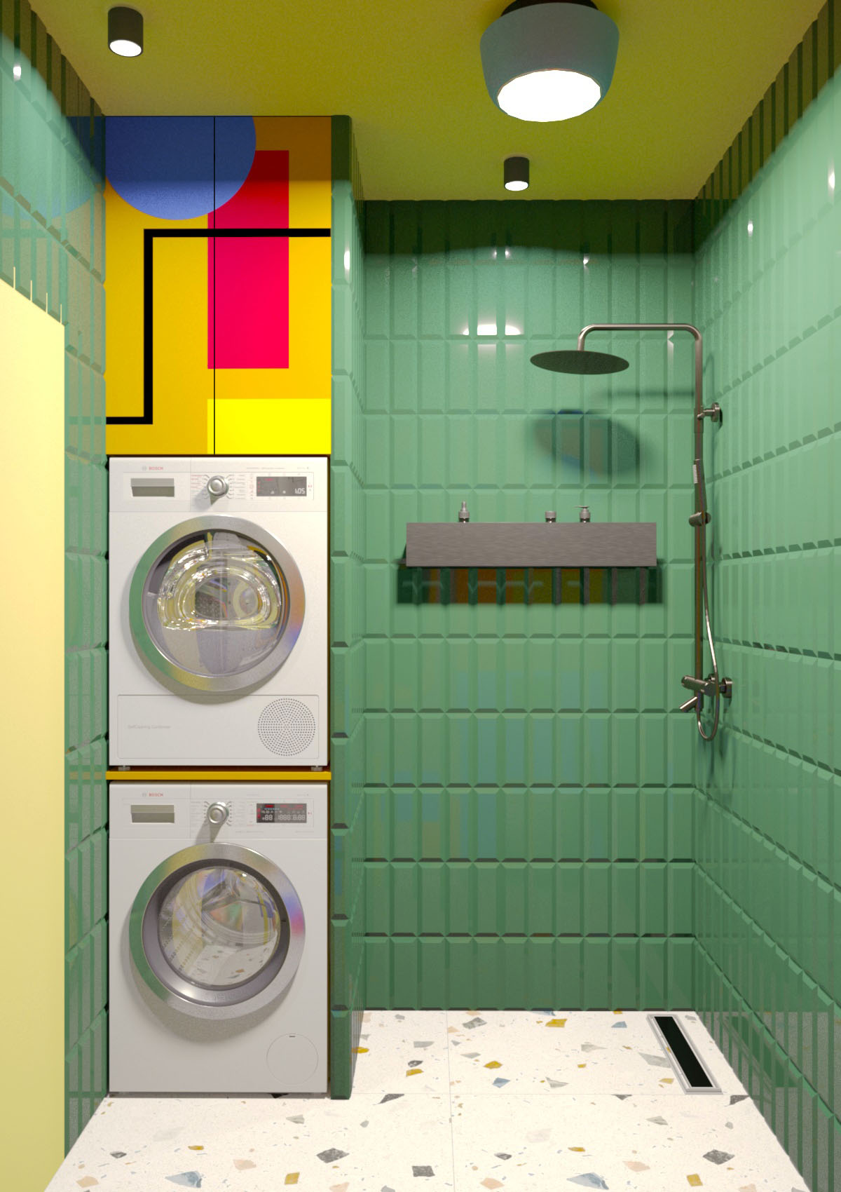 Эта квартира создана в ярких цветах с элементами авангарда, отражает влияние работ художников-авангардистов, таких как Василий Кандинский и Казимир Малевич. Основные элементы интерьера включают яркие цвета (насыщенный синий, жёлтый, красный, зелёный ) геометрические формы и линии, а также использование современных материалов и технологий. Создавая этот смелый интерьер, хотелось показать, что квартира может быть не просто обыденным жильем, но настоящим произведением искусства. Смотря на мебель, стены и все предметы находящийся в квартире, складывается ощущение, что там побывал художник и расписал все вокруг. Где-то пролилась краска, в каких-то местах он рисовал не отрывая кистью от предмета к предмету, соединяя их в единую композицию. Квартира представлялась нам свободным холстом, который очень ярко заиграл в руках художника, вдохновившегося авангардистами прошлого века.