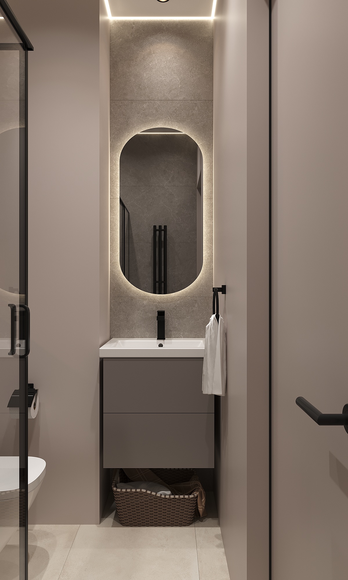 Изначально это было двушка 89м2 с кухней в центре и несколькими коридорами. Мы убрали стену, перенеся часть кухни в коридор, что позволило нам увеличить пространство и сделать уютную кухню -гостиную. Данная перепланировка позволила нам увеличить размеры с 14,76м2, до 17,73м2. В гостиной поставили большое зеркало, которое зрительно увеличивает пространство и добавляет "воздуха" Квартира выполнена в светлых тонах, стены покрашены в цвет "S 1502-Y50R" из палитры NCS - это нейтральный и утонченный оттенок. Этот цвет обладает нотками мягкого серого, но с теплым подтоном, который придает ему уют и комфорт. Этот оттенок является универсальным и способен придать помещению ощущение спокойствия и гармонии. Напольное покрытие в квартире комбинированное. На кухне используется Керамогранит Realistik Oak Wood Crema Punch 20x120 В жилых комнатах виниловый ламинат VINLAM Дуб Валенсия В ванной, для зонирования мы использовали стеклоблоки, которые отлично справились с задачей, но при этом не затенили помещение. В спальне на стенах используются комбинация стеновых панелей. Так же для декора монтированы черные профиля на стенах. Квартира получилась нежная и светлая.