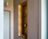 Зодиак. Покровское-Стрешнево 86 кв.м. Москва Интерьер построен вокруг ретро-палитры в серо-голубых оттенках и терракоты с ярким акцентом в ванной. Создавая ретро-настроение, выбирали мебель с характерными силуэтами того времени и предметы mid- century. Проект получился, как кадр из старого фильма, — сдержанный, стильный и романтичный.